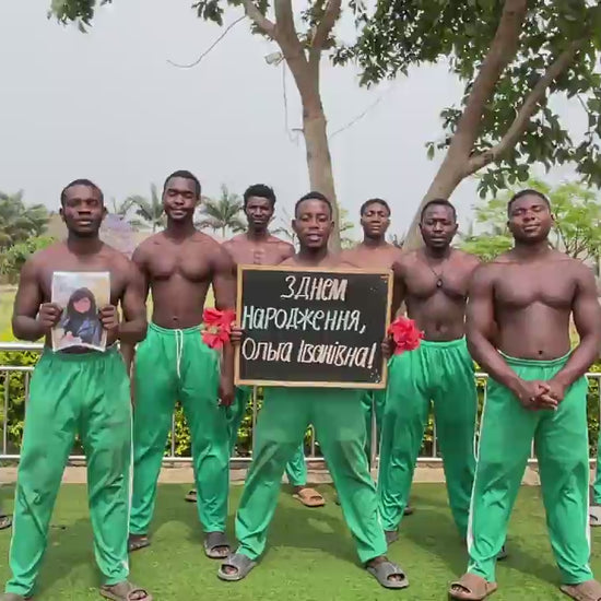 Здивуйте своїх близьких найвідомішим танцювальним привітанням з Африки! 🎉 Ідеально підходить для днів народження, весіль, підвищення по службі або просто для веселощів!